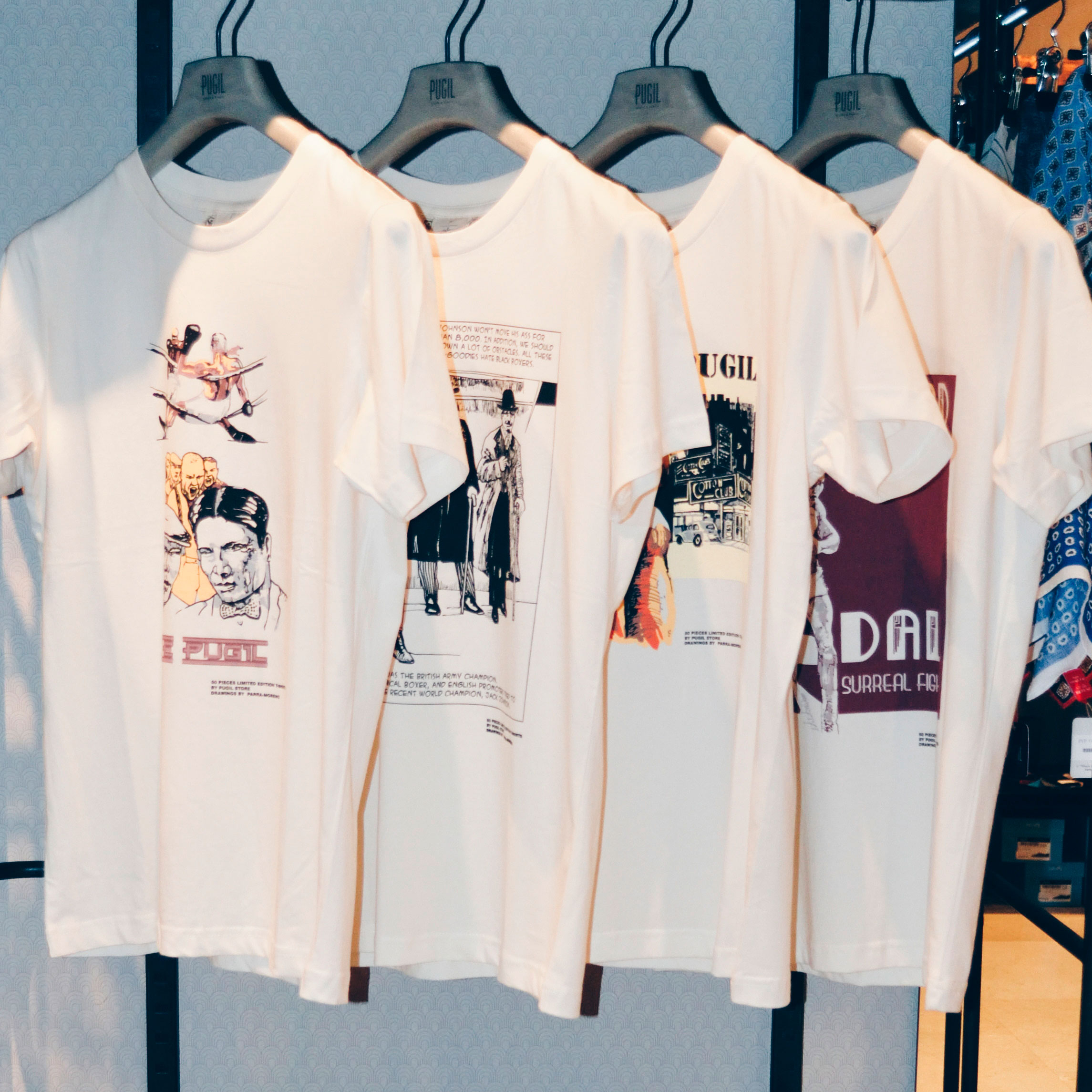 De charlas sobre boxeo y un compartir de ideas fueron surgiendo los cuatro bocetos que hoy forman la colección de edición limitada que ilustran nuestras camisetas.