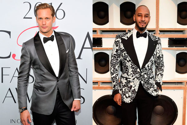 Una chaqueta normalmente negra, podemos utilizar también otros tonos, cómo el azul medianoche, o dependiendo de la solemnidad del evento al que se acuda, usar combinaciones más atrevidas. Un ejemplo, serían los esmoquin diseñados por Tom Ford que vemos en estrenos de cine o entregas de premios.